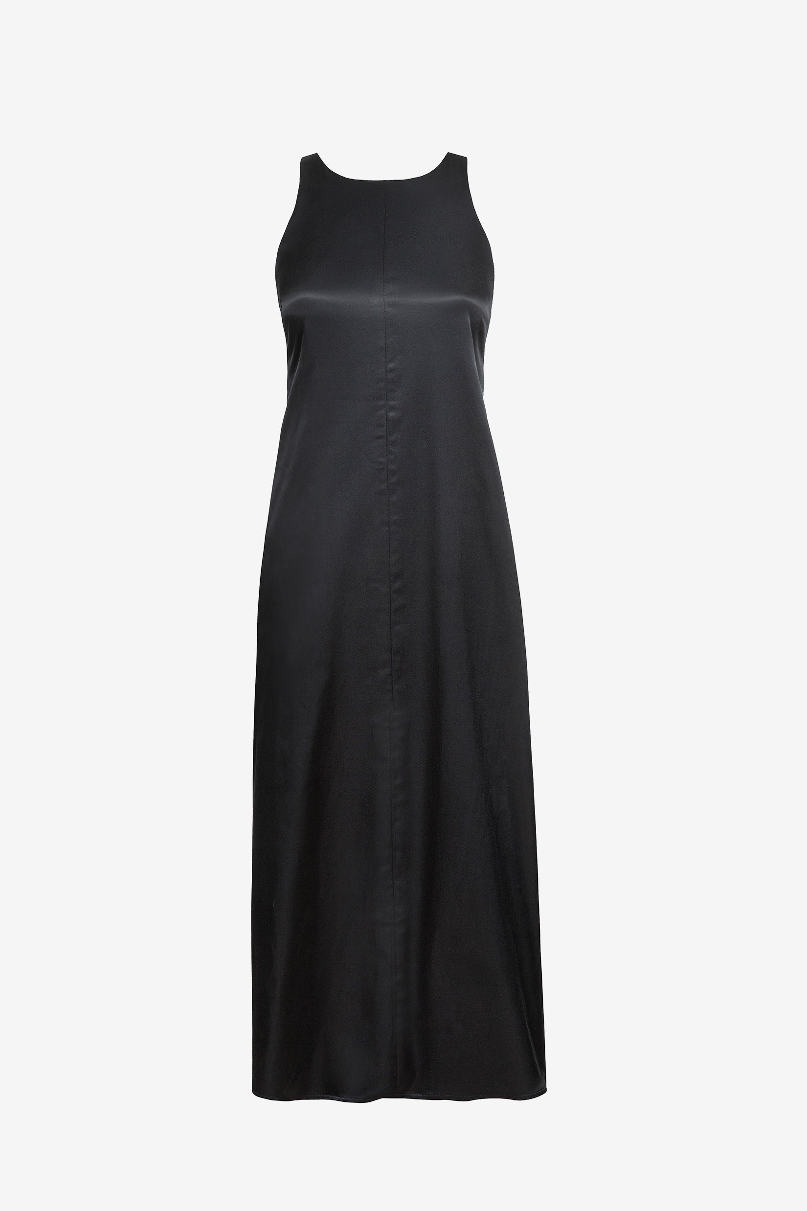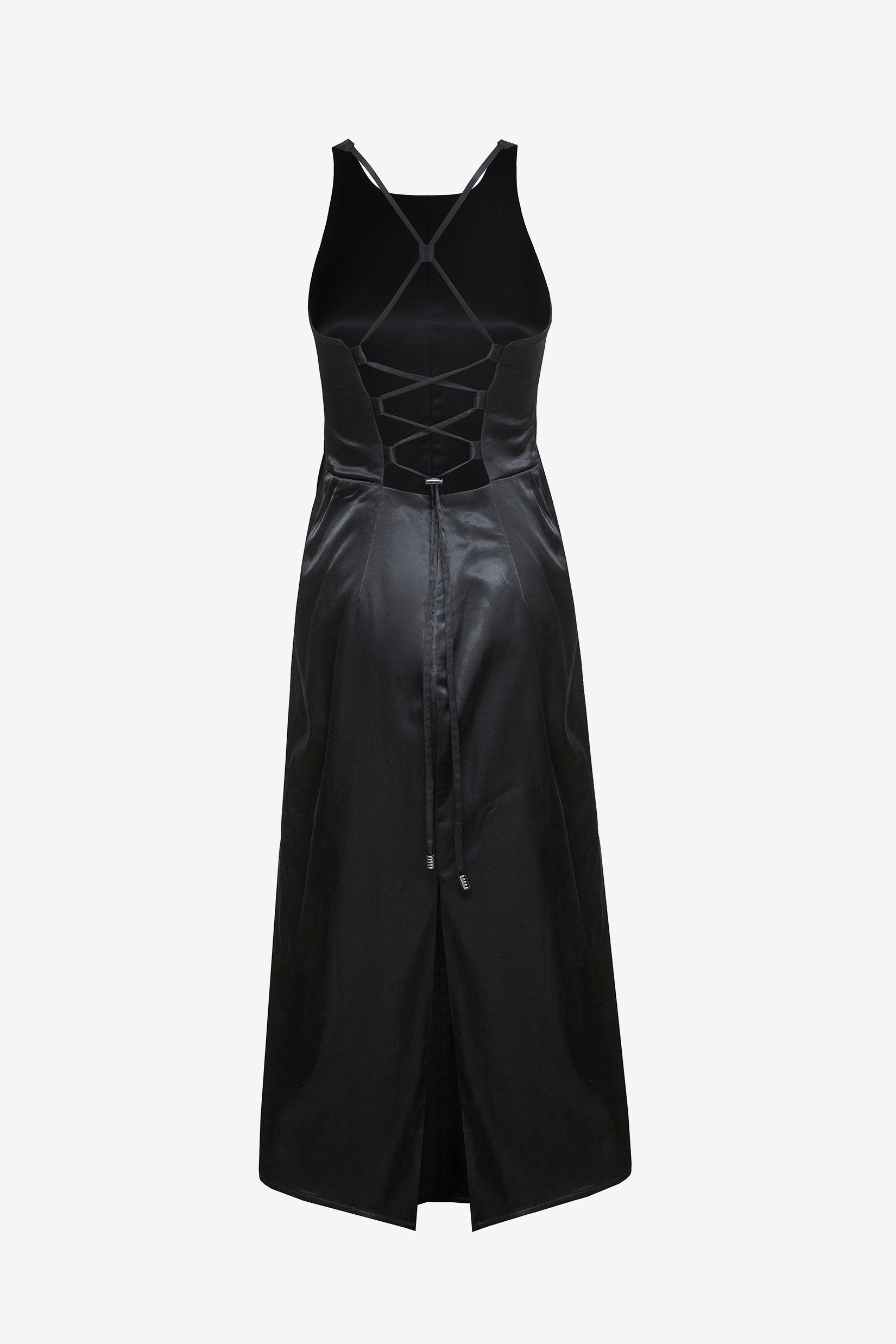 Our satin dress, made from a soft cotton/viscose fabric, designed for a regular comfortable fit, featuring open back with adjustable elastic cord and metal stopper.