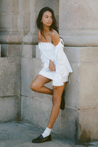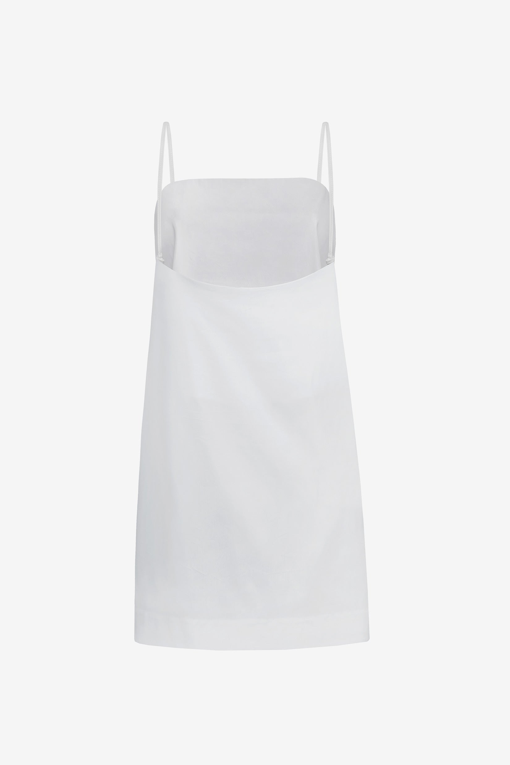 Our poplin mini dress, designed with a square neckline and fine straps, cut for a crisp silhouette that feels both light and structured.