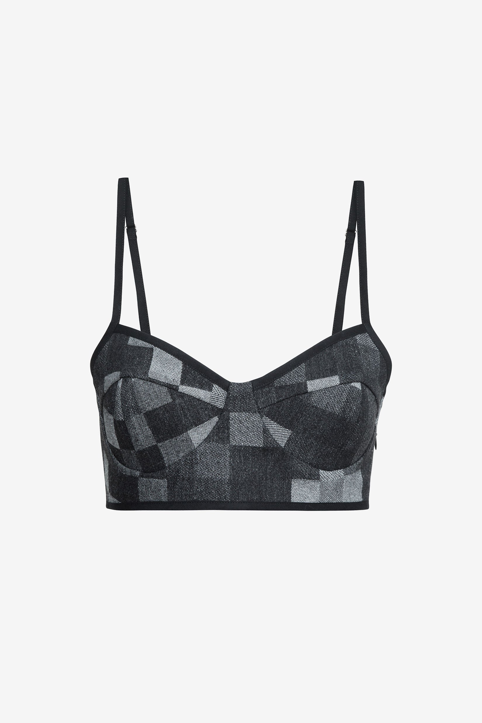 Our Selene Urban Bralette is crafted from cotton in a monochrome checkered pattern, offering a structured yet comfortable fit. Minimalist in design, it balances clean lines with modern ease for effortless styling.