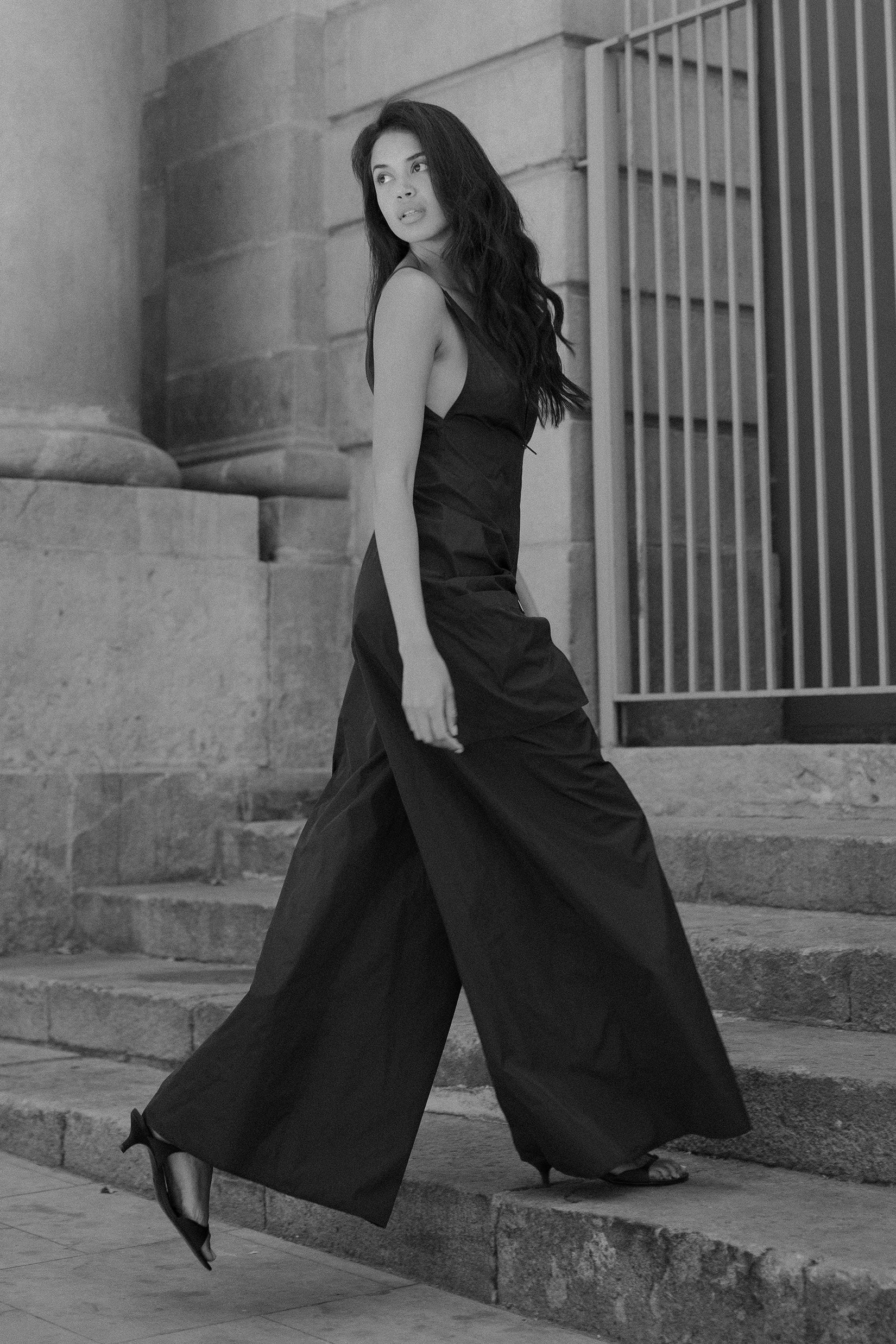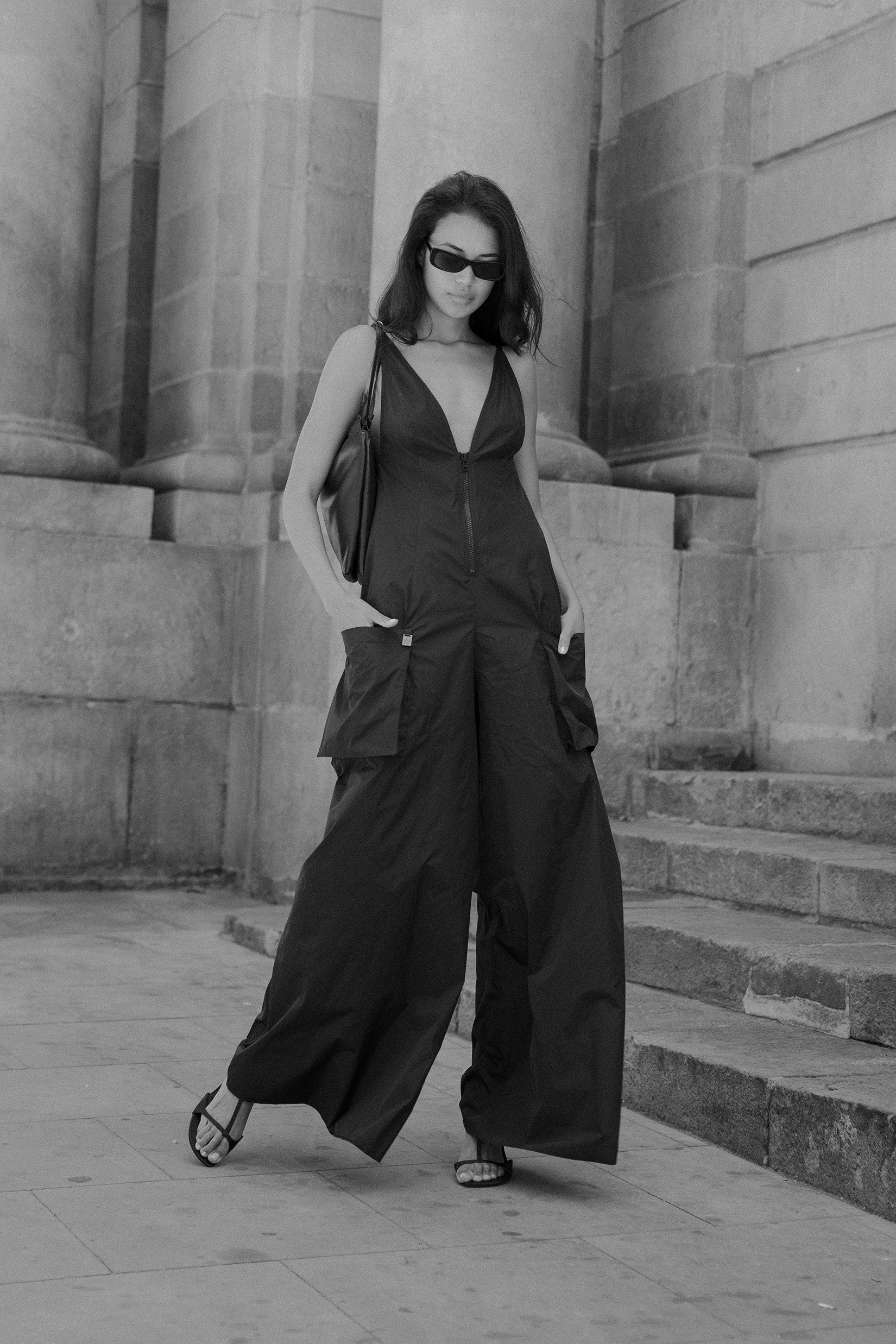 Our urban jumpsuit, featuring AV signature details and soft fabrication, designed for a regular and comfortable fit with cargo pockets.