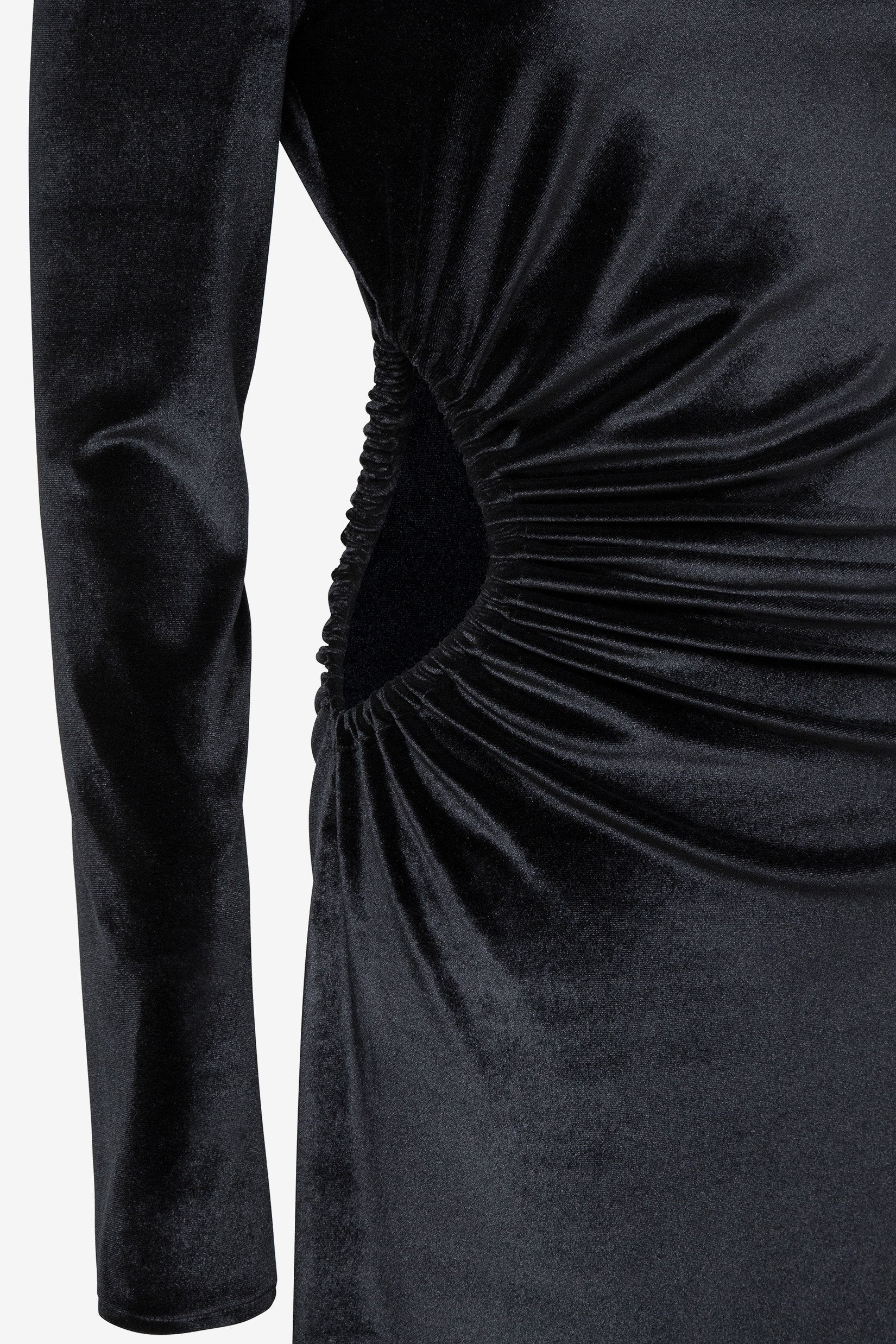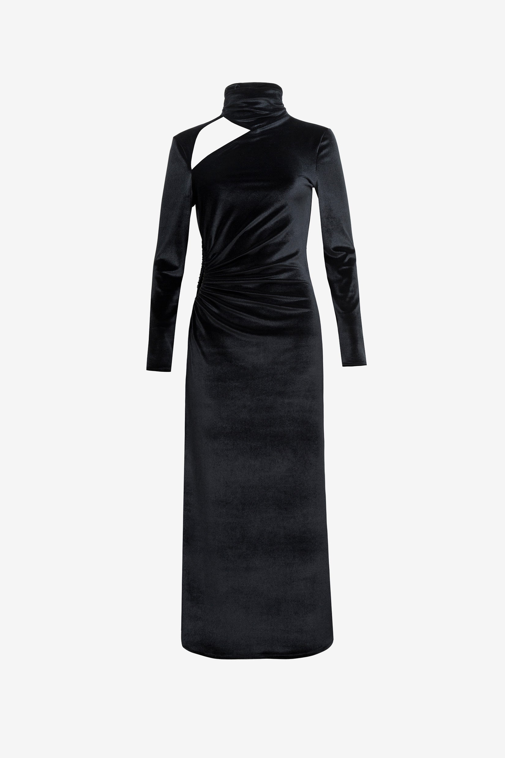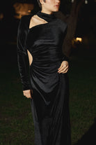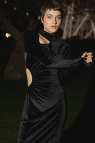 Miss AV Veronique features intricate cut-outs crafted from soft velvet, making this dress a winter must-have.