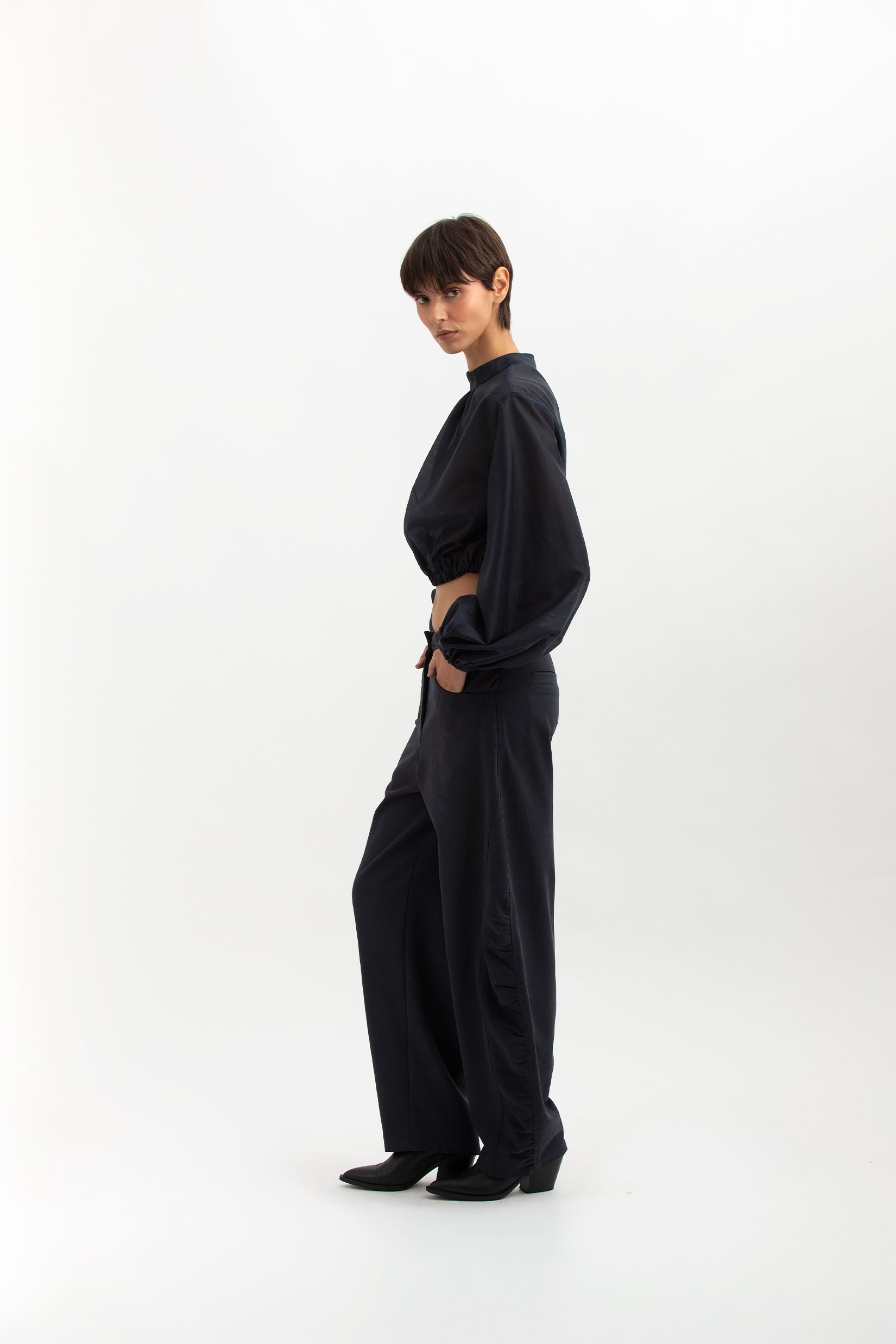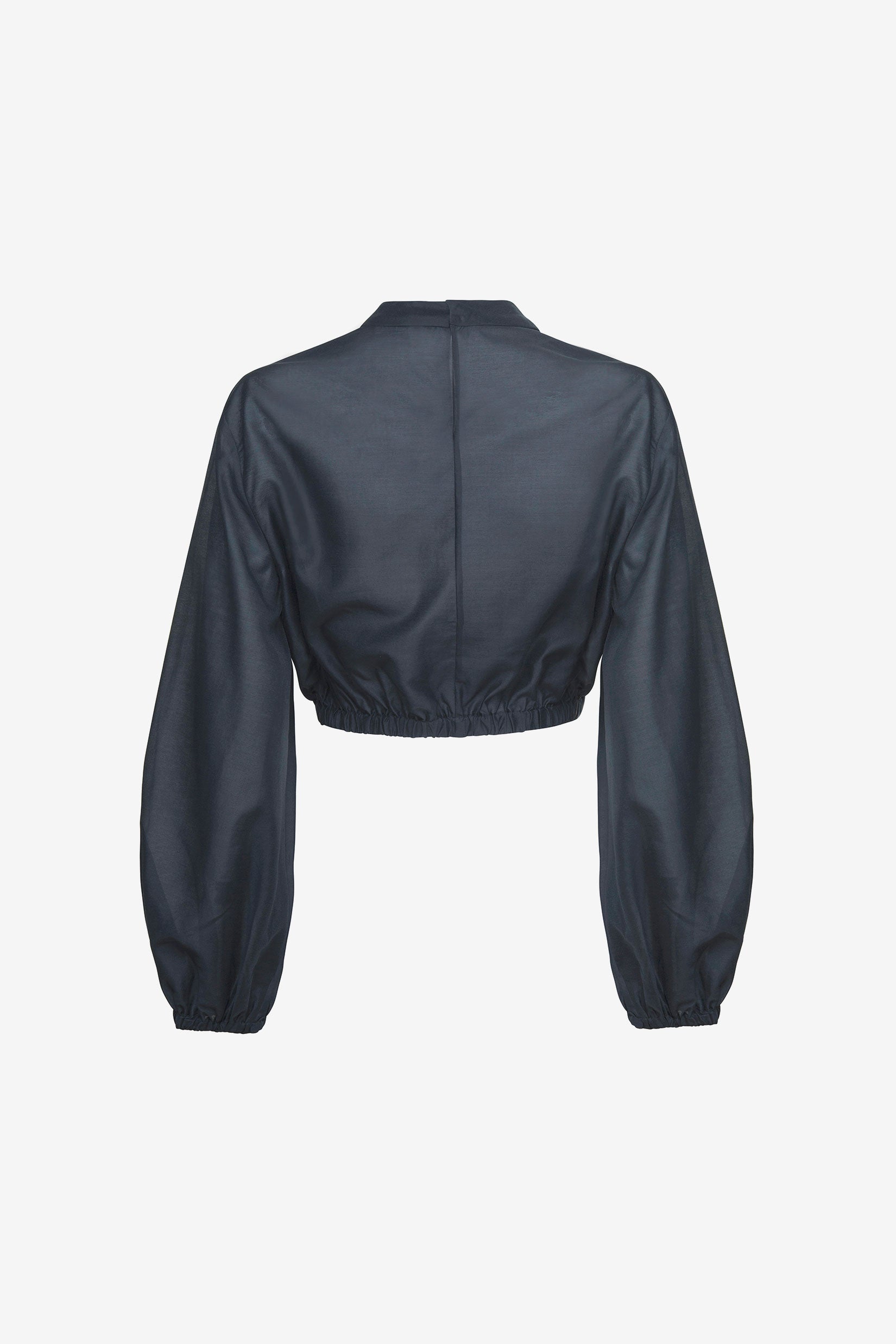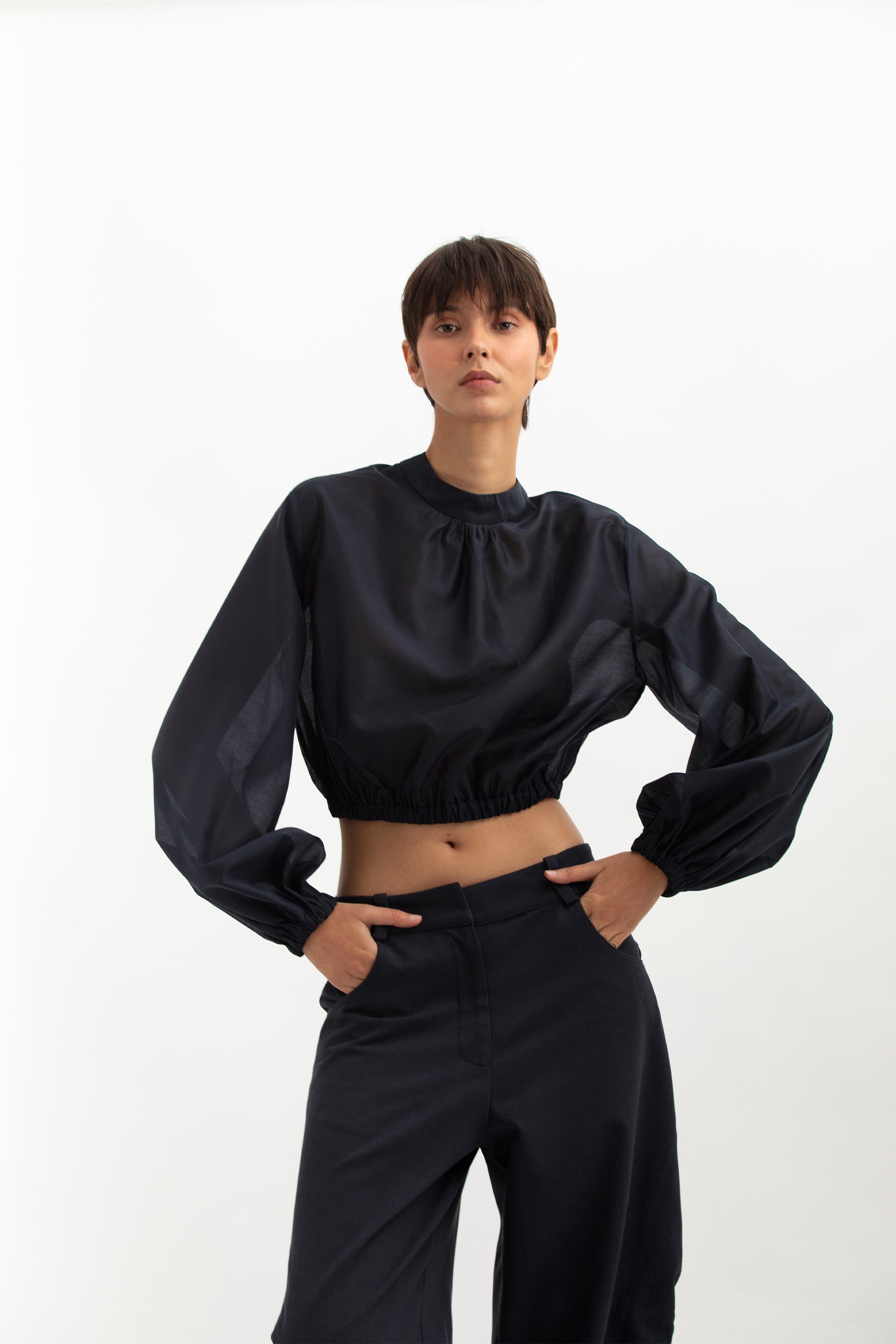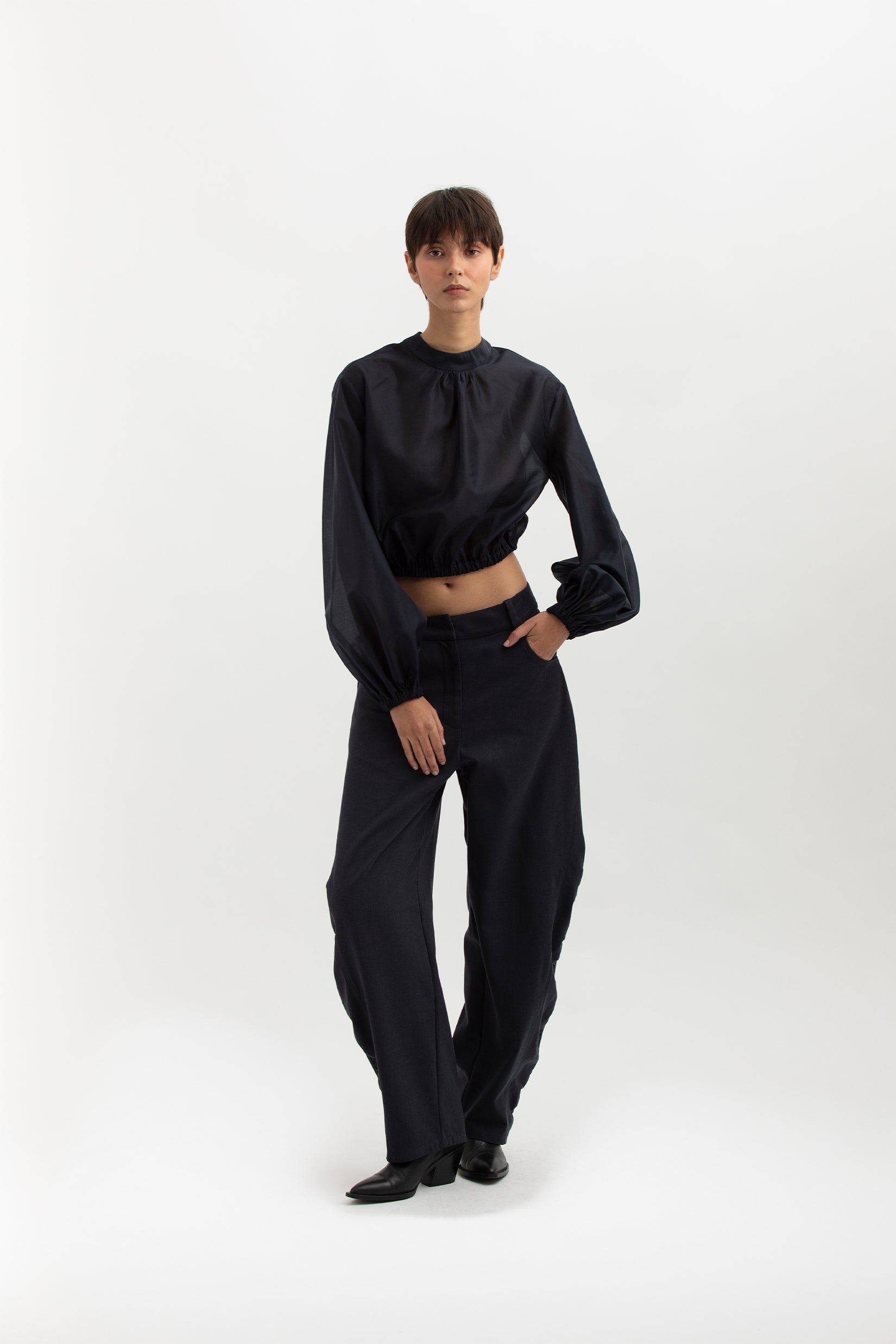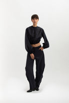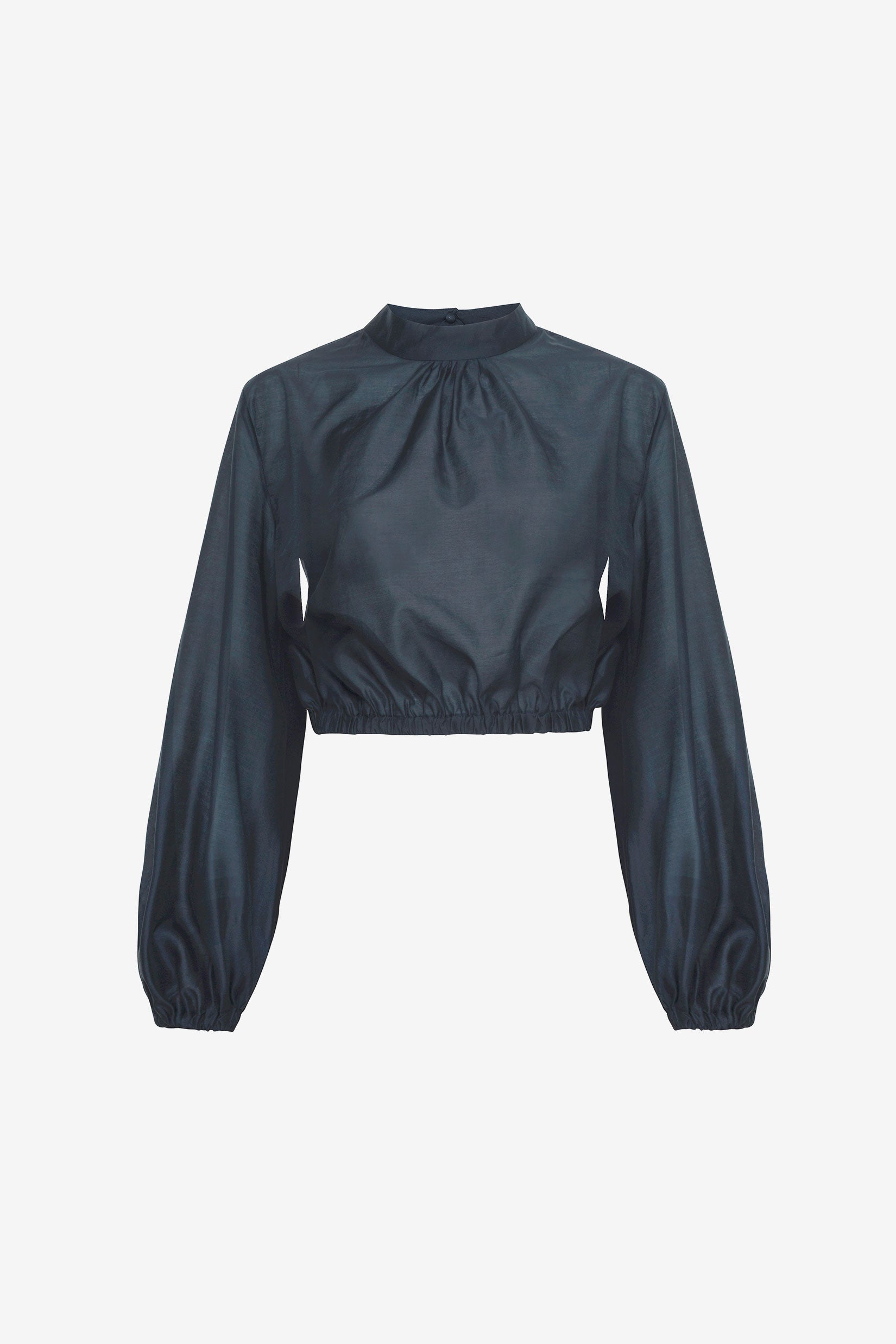 Our Selene Tencel Blouse is crafted from soft, fluid tencel in a muted Ash tone. Defined by a high collar neckline, elasticated waist, and subtle balloon sleeve detailing, it balances gentle volume with a refined silhouette. A timeless piece that embodies quiet sophistication.
