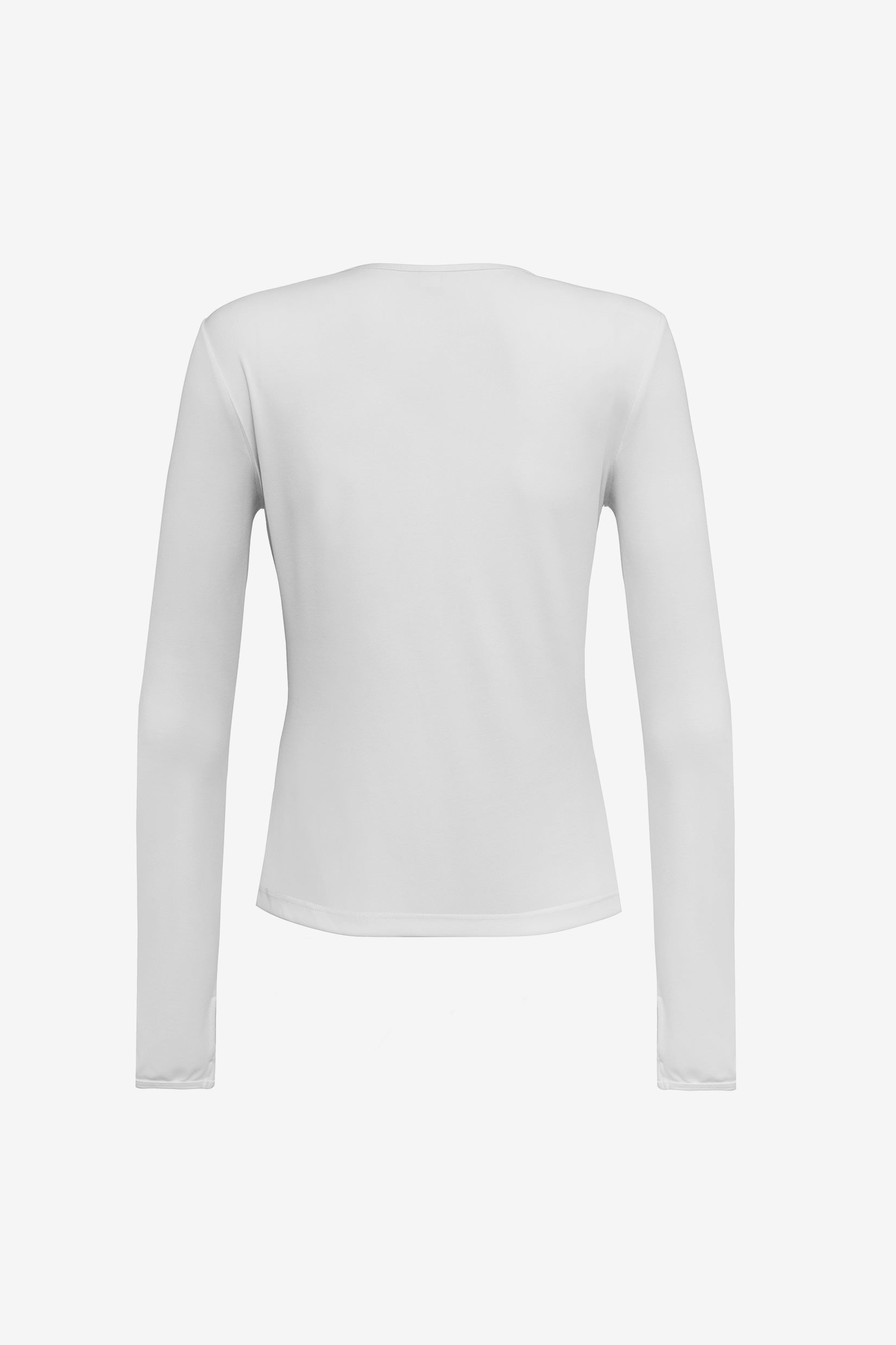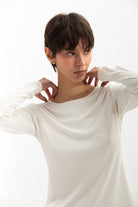 Our Selene Rib Top is crafted in soft French White ribbed fabric, designed with a high round neckline and long sleeves for a sleek, close fit. Minimalist and versatile, it embodies modern ease while layering effortlessly. Each piece is handmade in our Barcelona atelier.