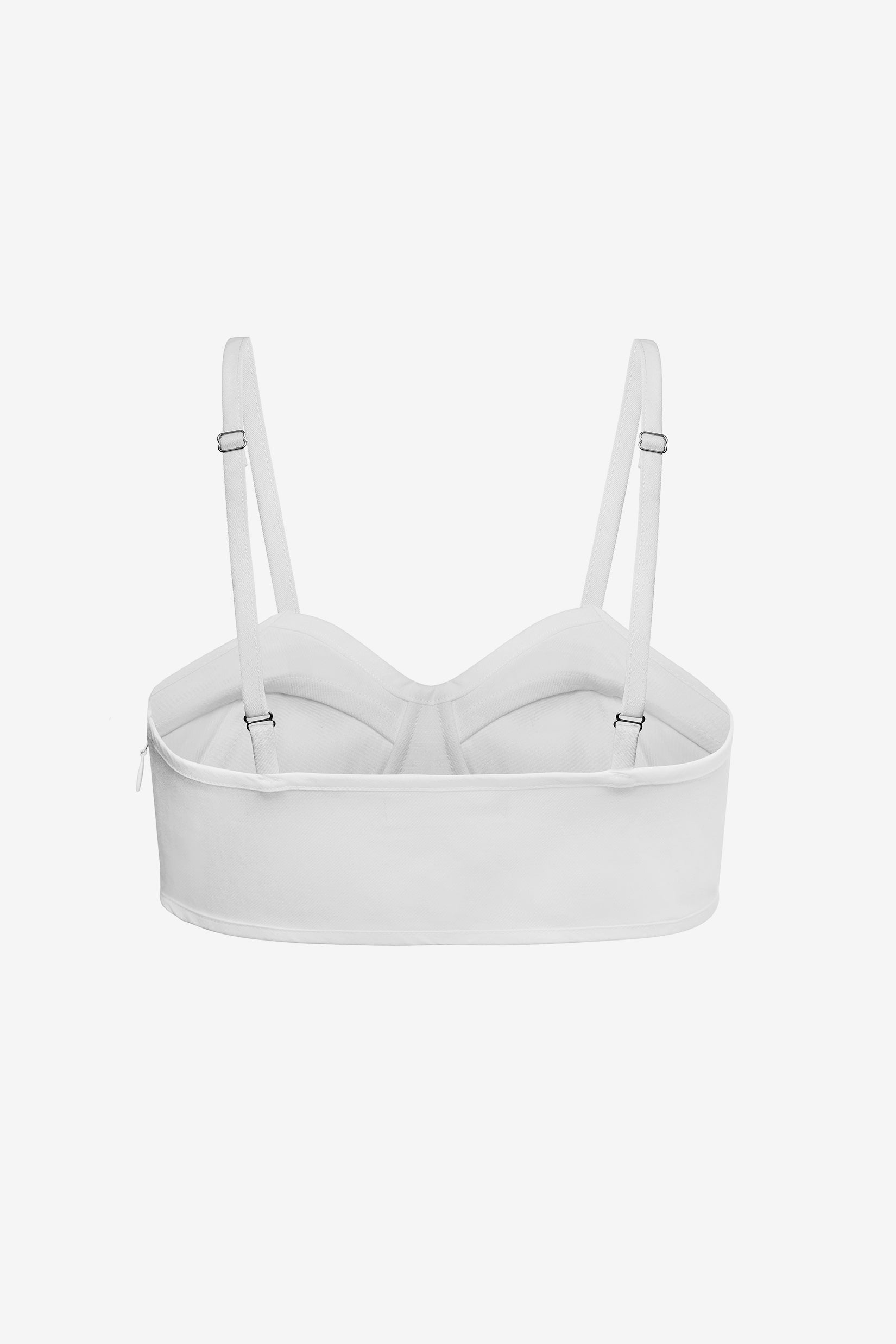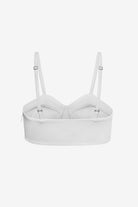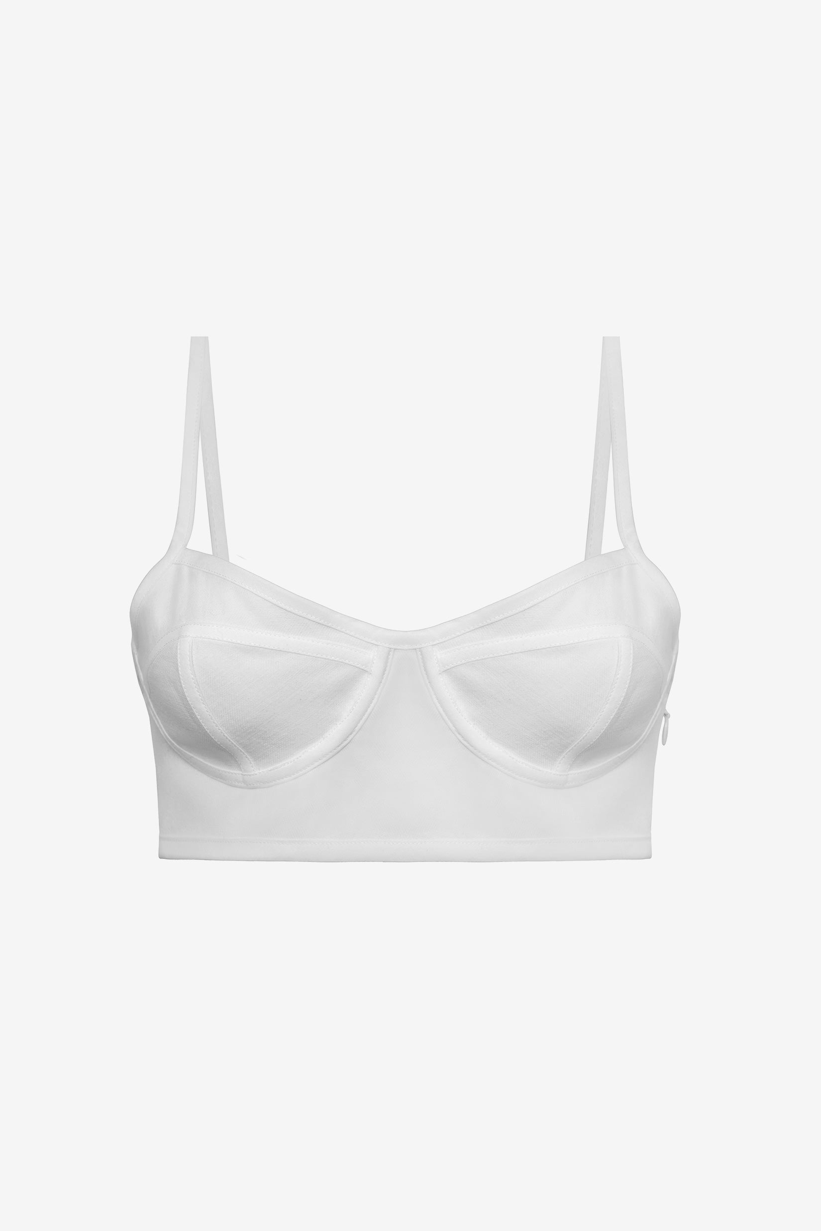 The Selene bralette-style top features delicate ribbon seam detailing and a structured yet feminine silhouette. Handcrafted in our Barcelona atelier, it offers a refined balance of modern sensuality and understated elegance.