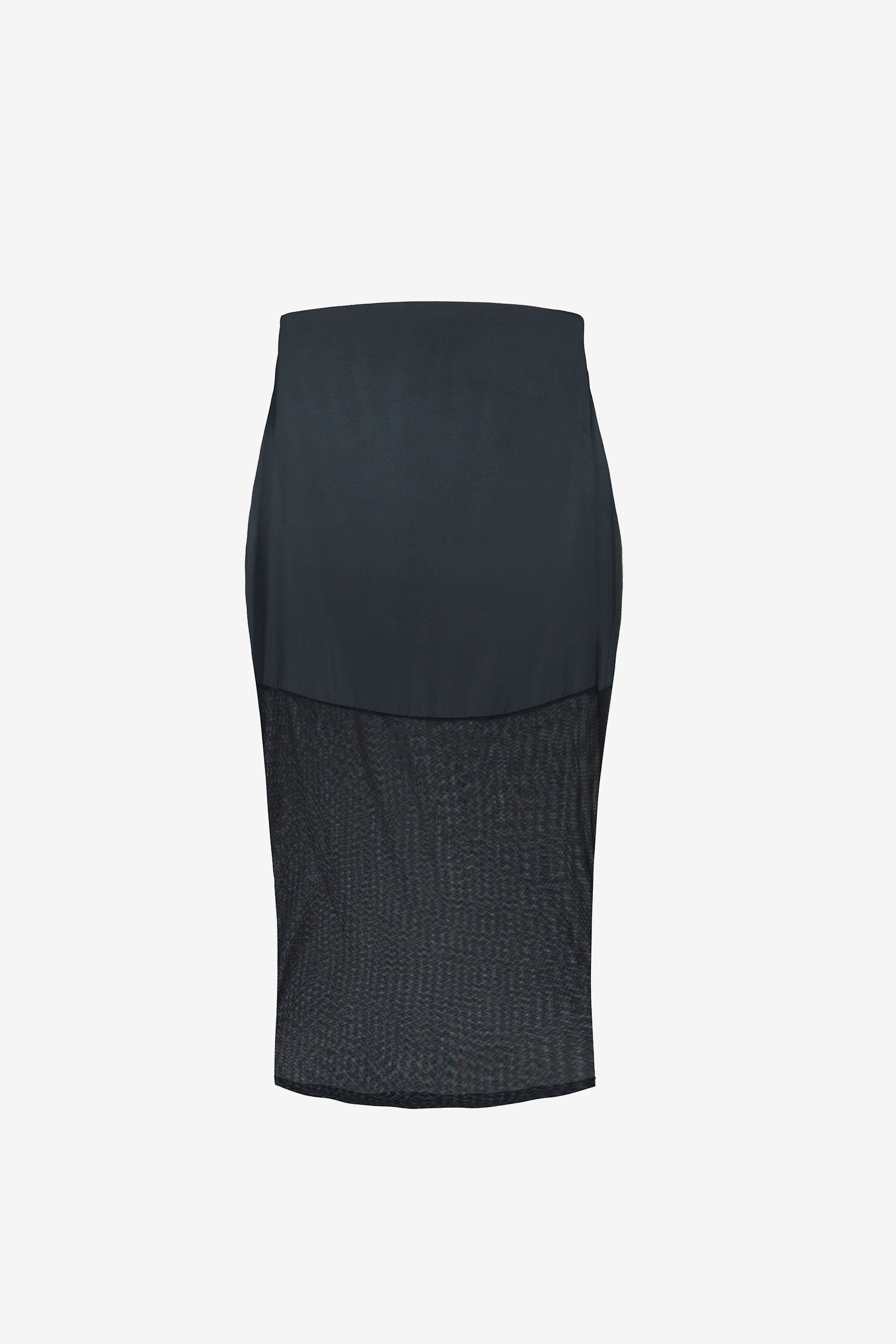 Our All-Gen Limited Edition Skirt is crafted in classic negro nylon, featuring a mini silhouette layered with a mid-length mesh overlay. Cut to a mid-waist fit, it merges modern structure with subtle dimensionality.