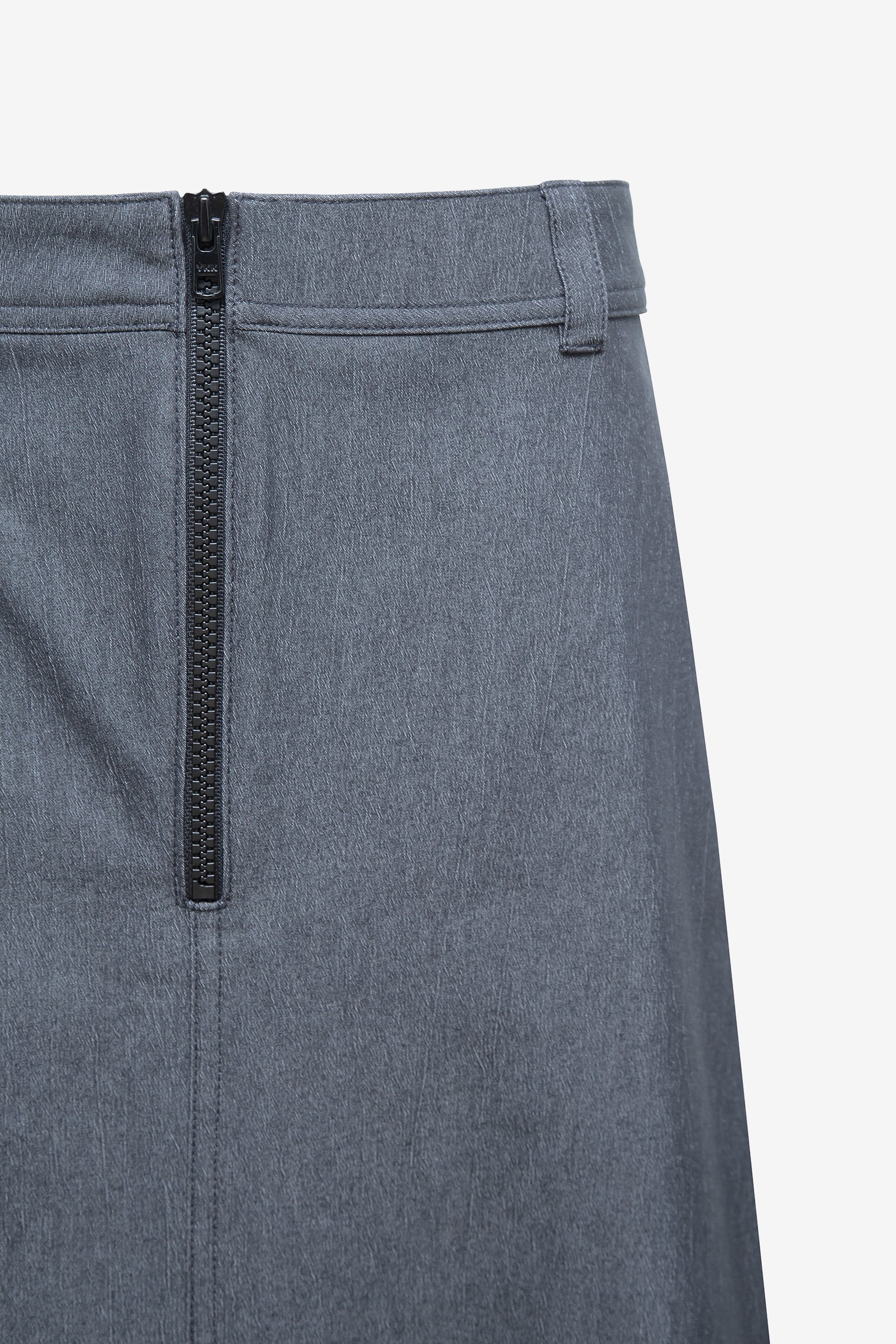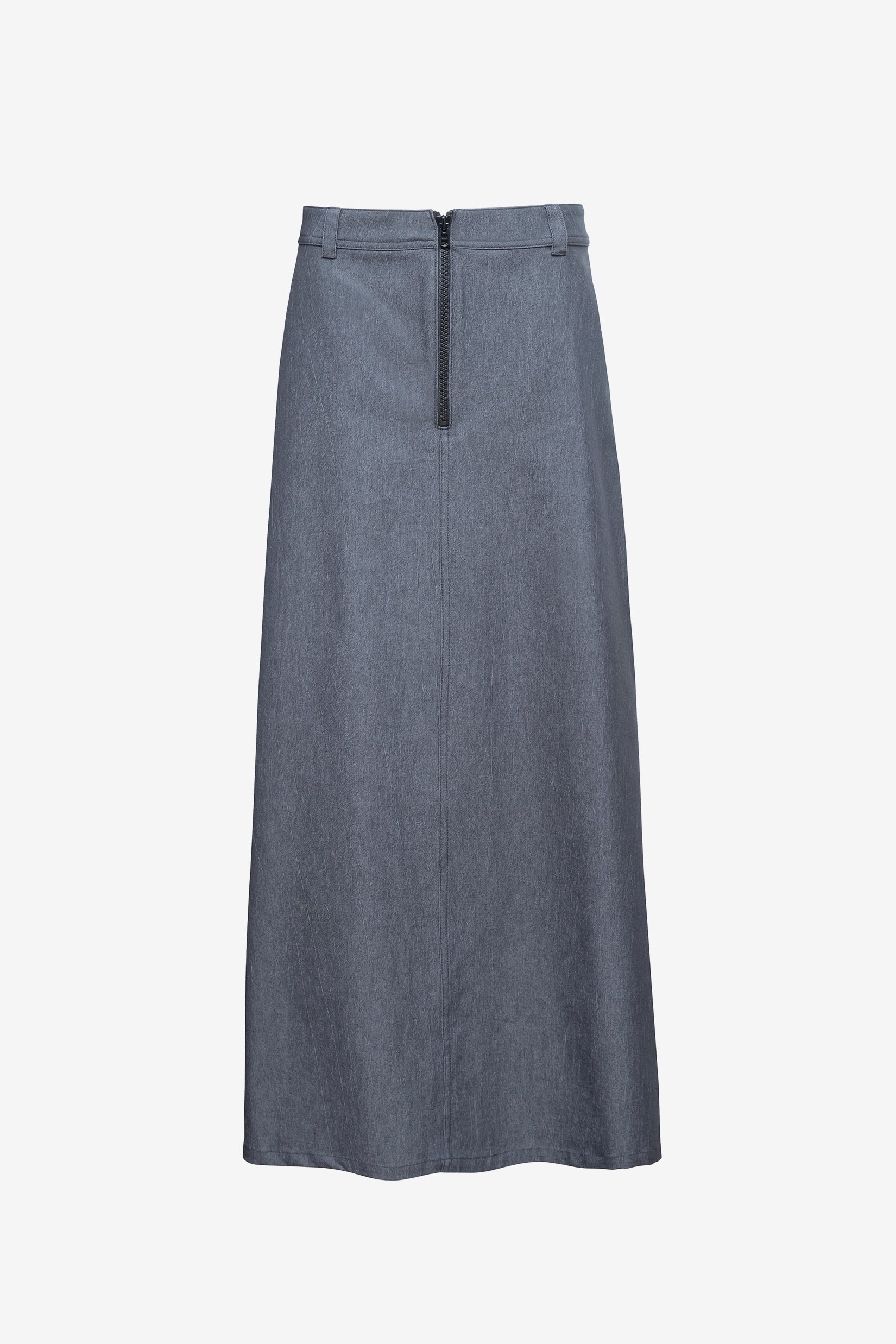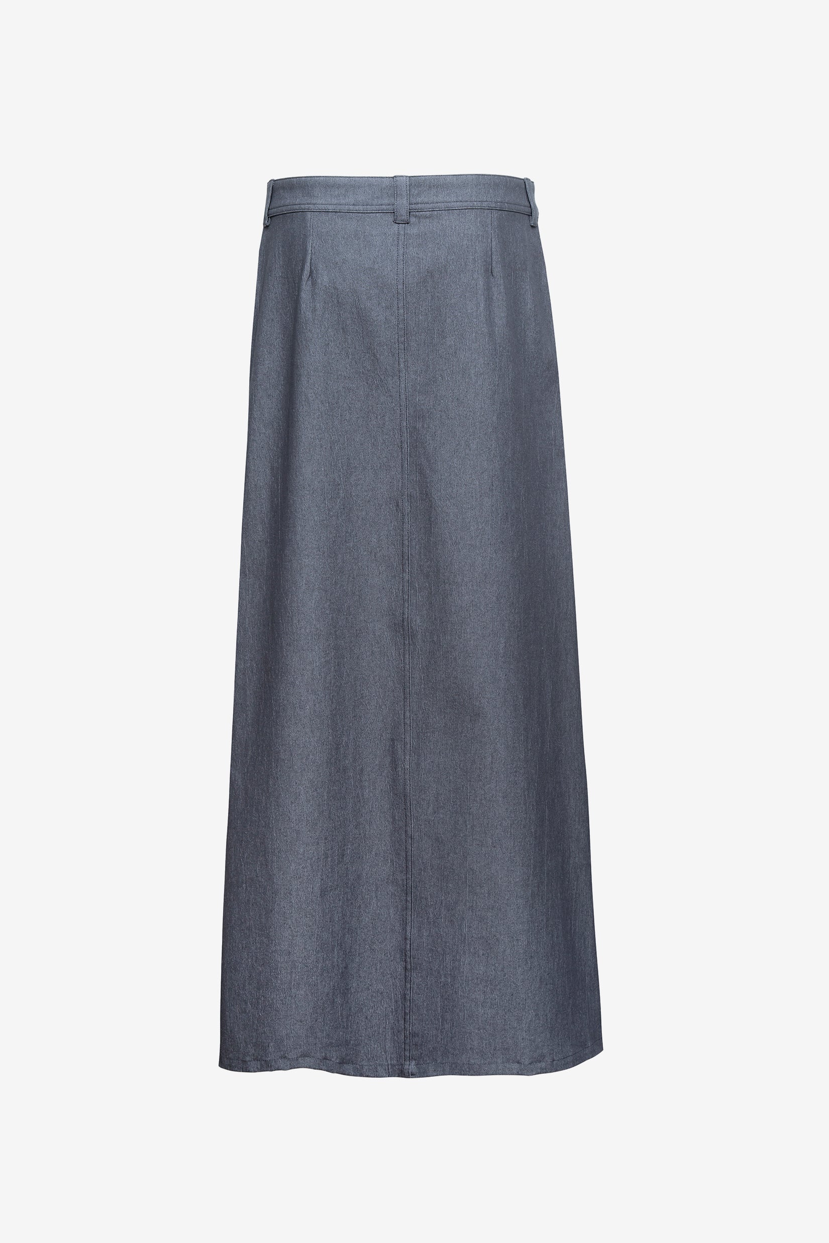 Miss AV denim maxi skirt. Featuring a front zipper closer with belt loops and belt.