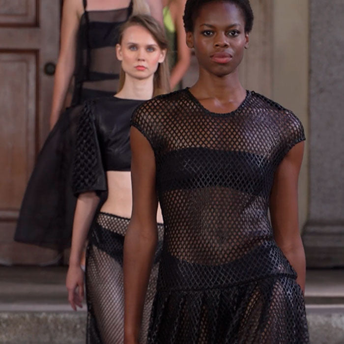 A selection of demi-couture from the new S/S 24; a striking contrast between black and vibrant colours.