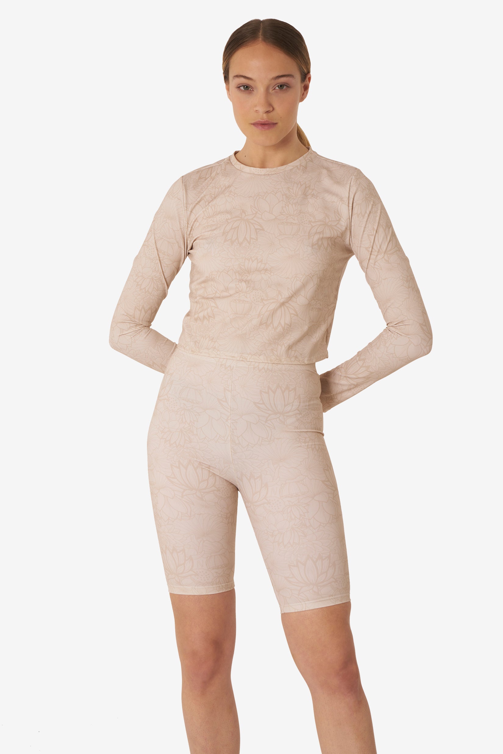 You’ll never miss your morning workout with our Signature Print Bike Shorts. They’re the closet essential you’ll reach for every day. Inspired by our favourite shapewear, these bike shorts incorporate our signature beige lotus print for a feminine feel. Style with the matching top or bodysuit for the ultimate athleisure look. Handmade in our atelier.