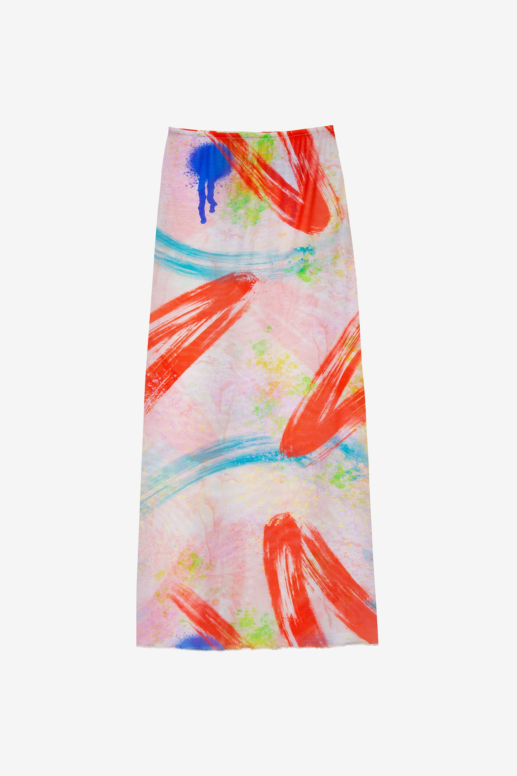 A printed mesh skirt, featuring our Brush Stoke Print inspired from our Venus Collection.