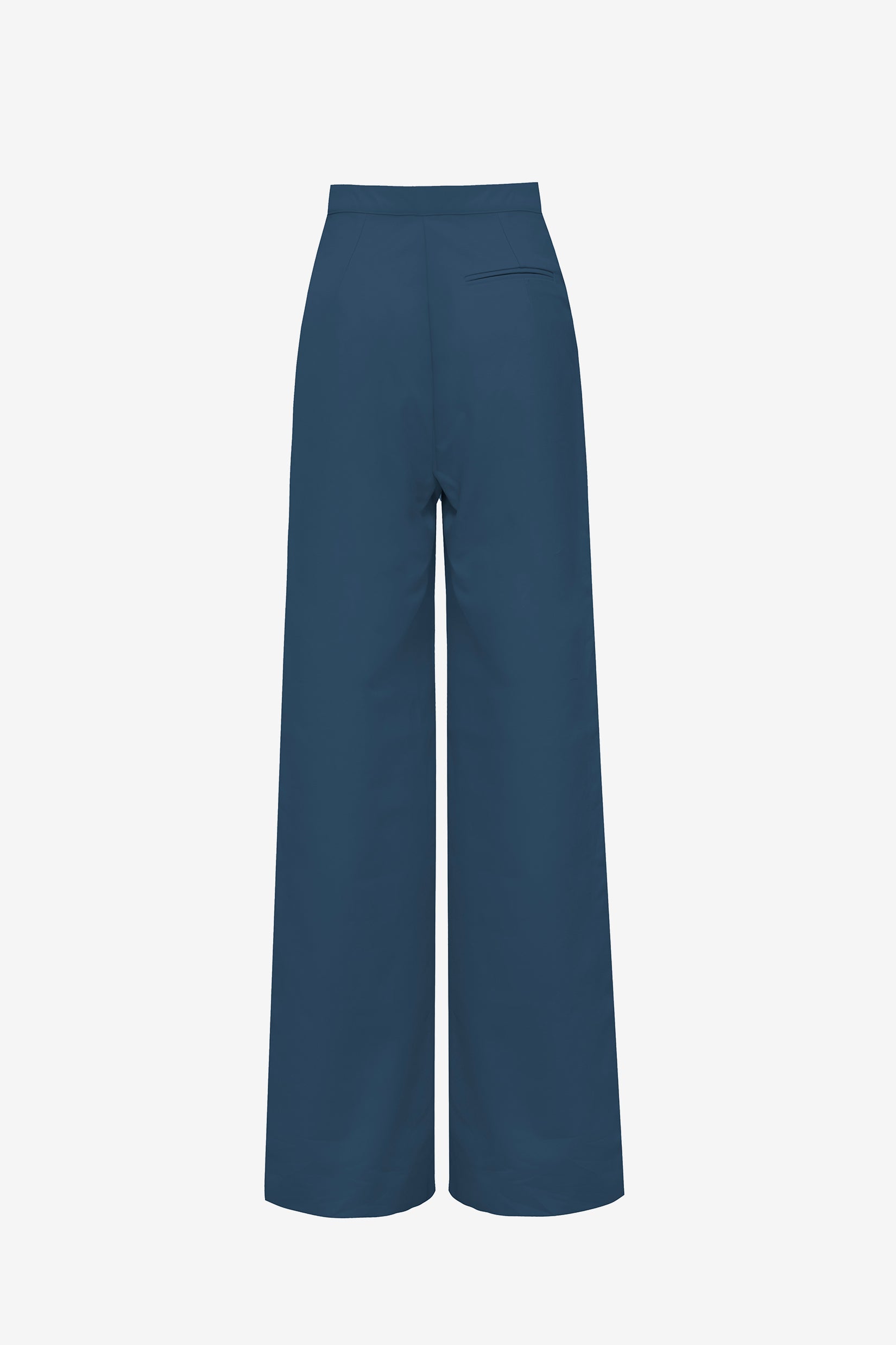 Tailored trousers made from 100% cotton. This style has a flared leg, a tailored pocket detail at the back, and a zipper and hook closure. Each piece is handmade in our Barcelona atelier.