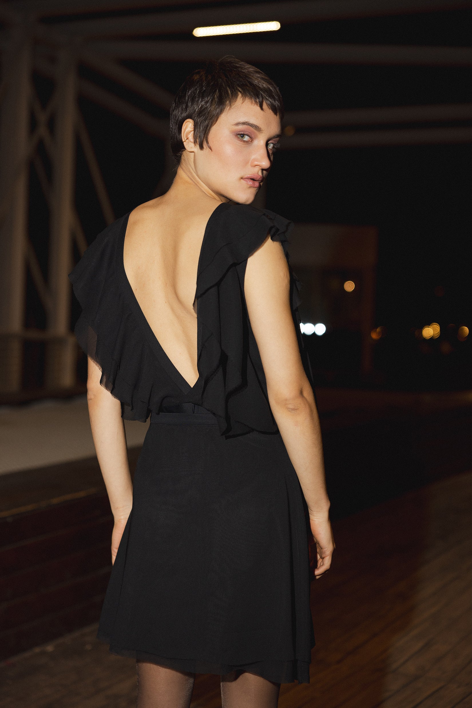 MISS AV Ruffled Chiffon Bodysuit