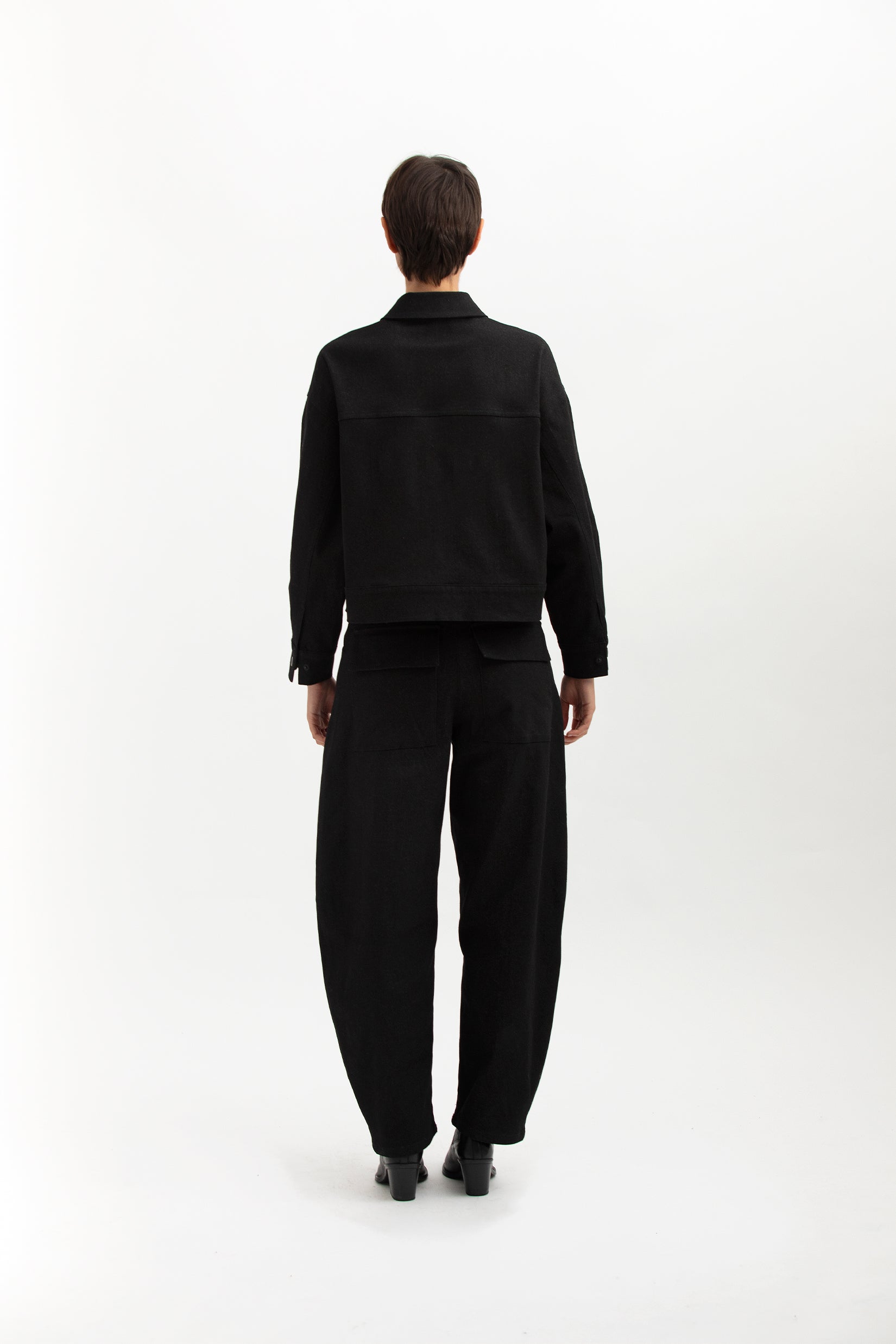 Our Selene Jacket is crafted from noir denim, designed with softly ruched balloon sleeves and a defined bodice that sculpts the form. A statement in proportion and precision, it embodies modern structure with effortless femininity.