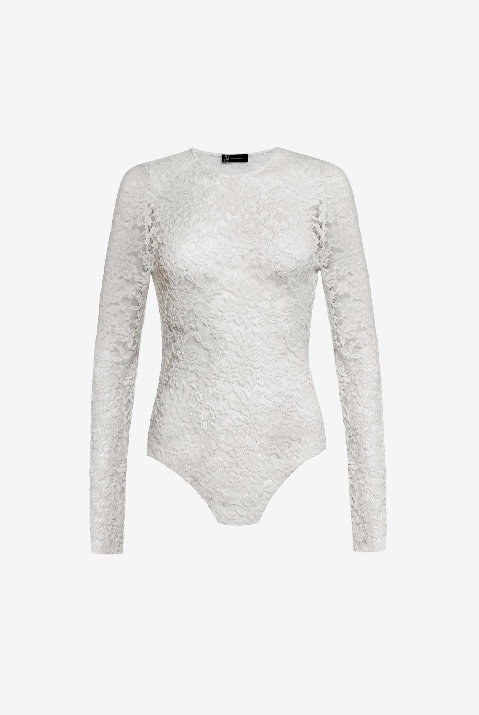 Our Selene Lace Bodysuit is crafted from intricate off-white lace, combining delicate transparency with a sculpted fit. Designed with elongated sleeves finished with thumbholes and a discreet snap closure, it’s a modern interpretation of feminine strength and ease.