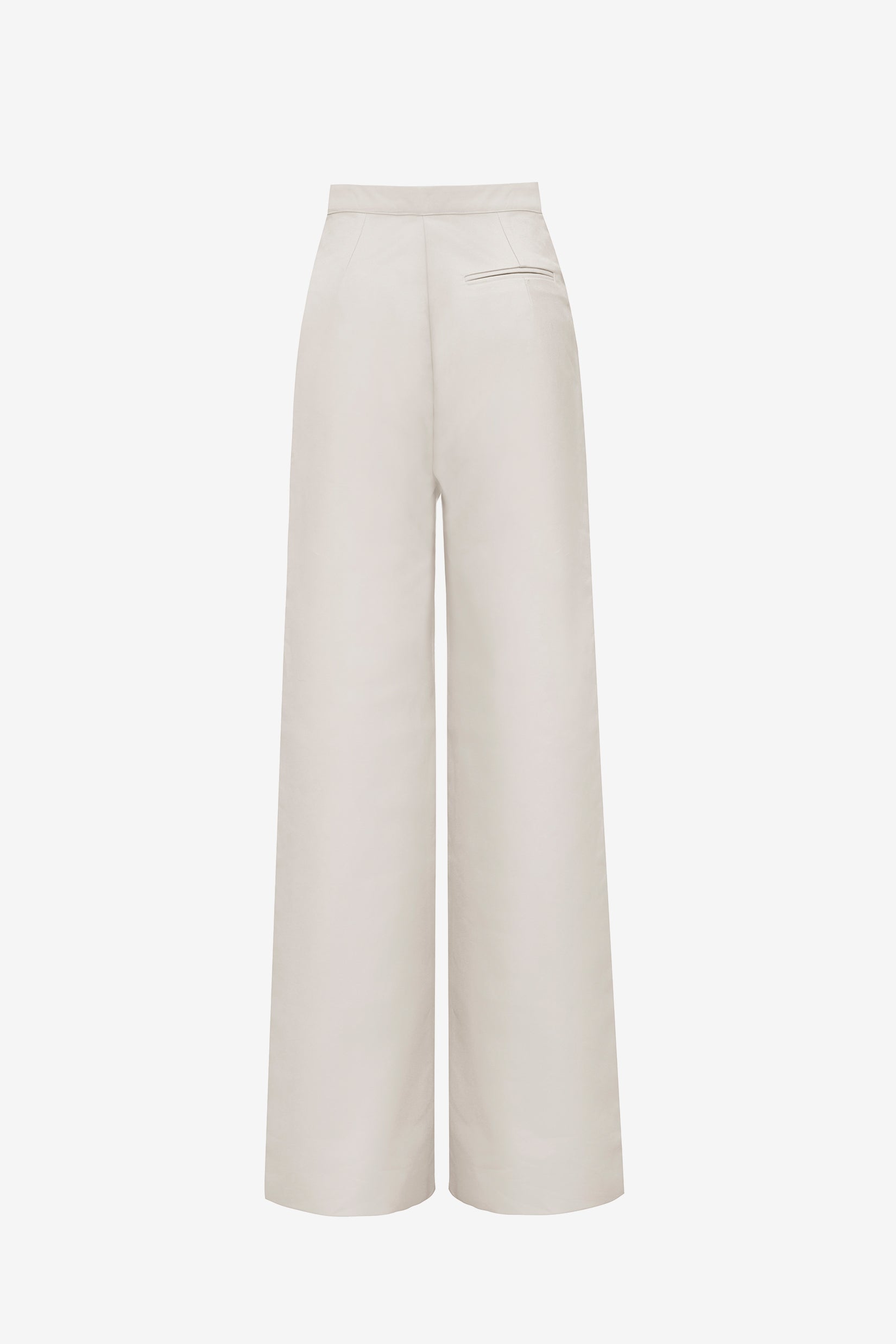 Tailored trousers made from 100% cotton. This style has a flared leg, a tailored pocket detail at the back, and a zipper and hook closure. Each piece is handmade in our Barcelona atelier.