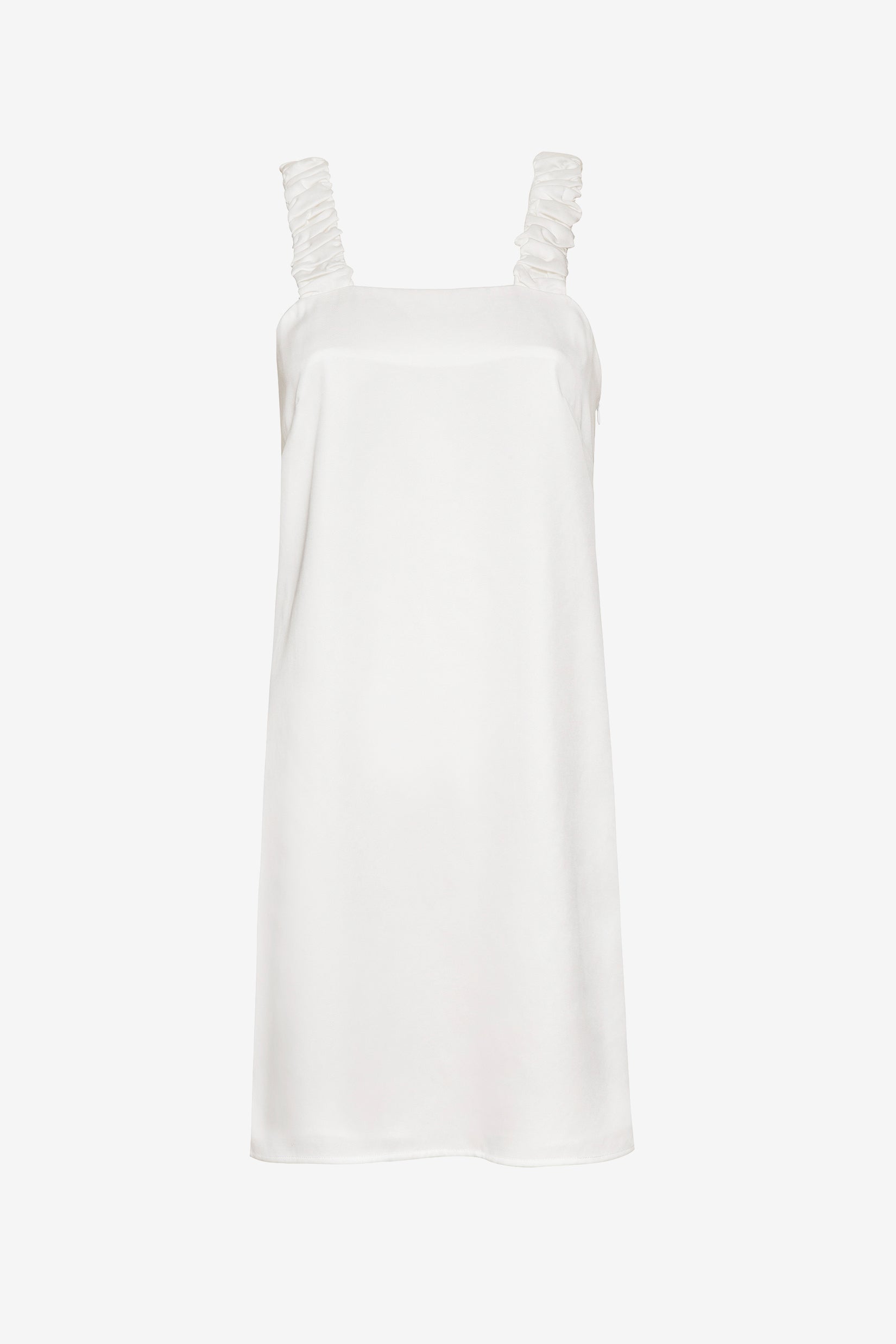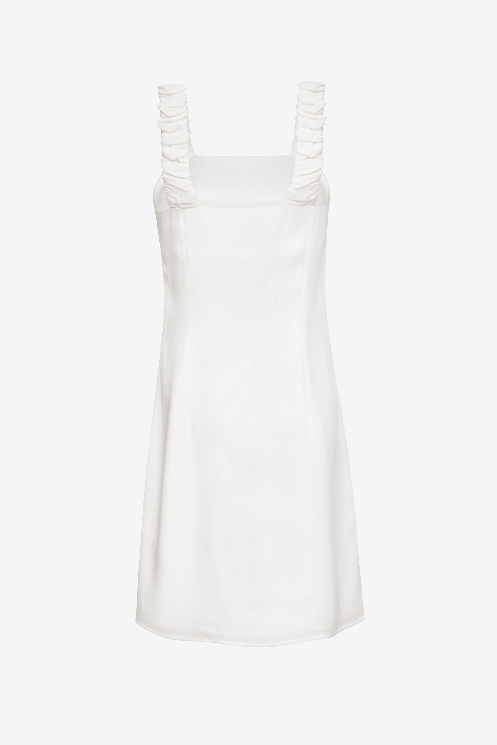 A mini dress, made from from Tencel fabric, featuring sucon stitching by the breast. With a square neckline, two ruched elastic straps, and zip fastening. Every piece is handmade in our Barcelona atelier.
