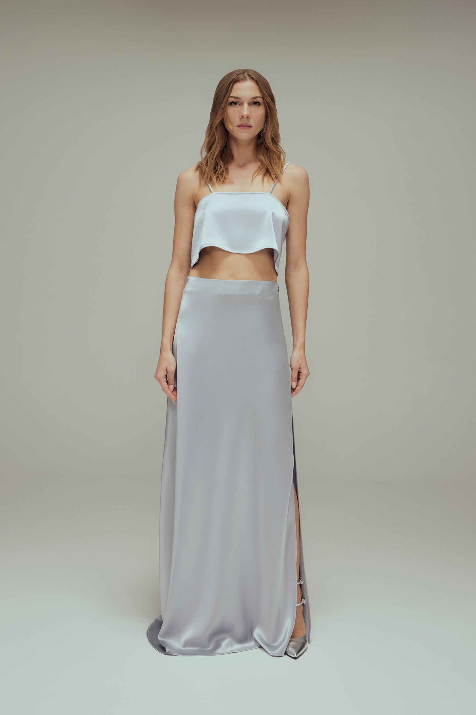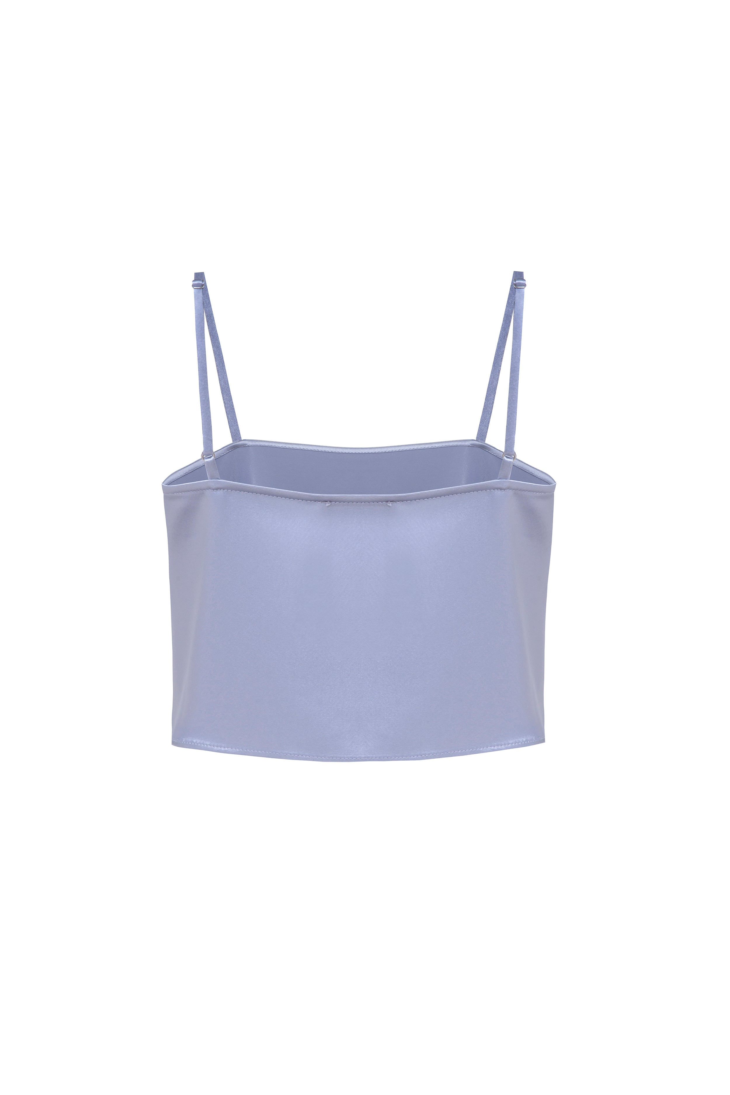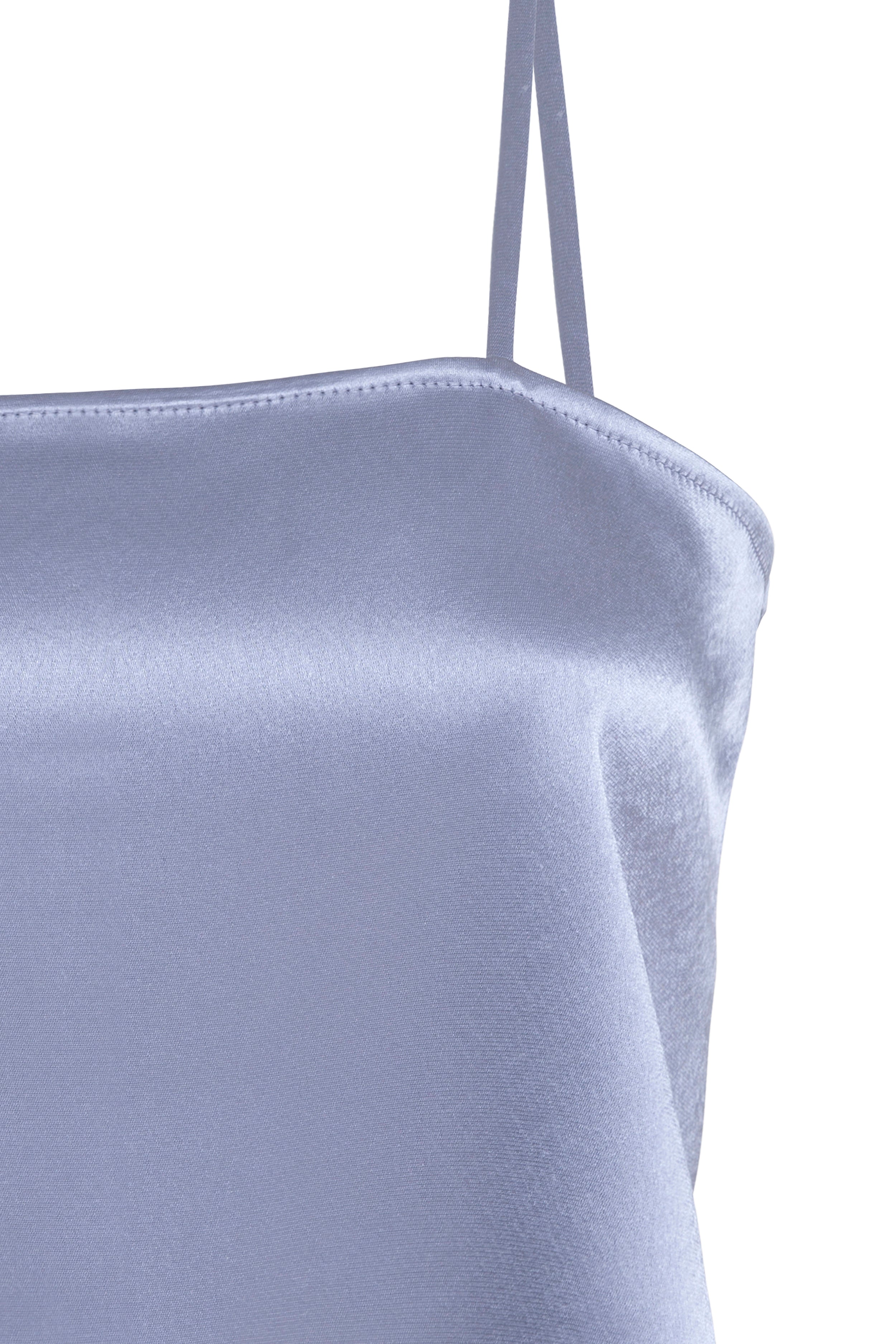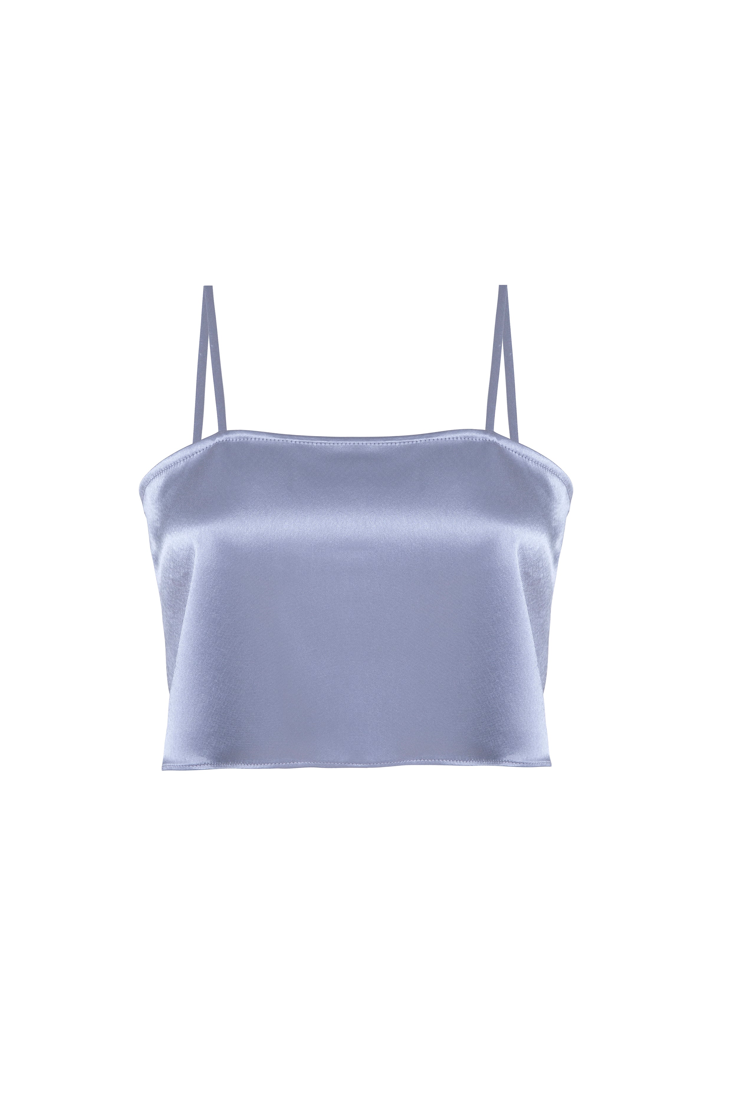 A silky satin cropped camisole made from soft satin. This top features adjustable spaghetti straps and has a regular fit.